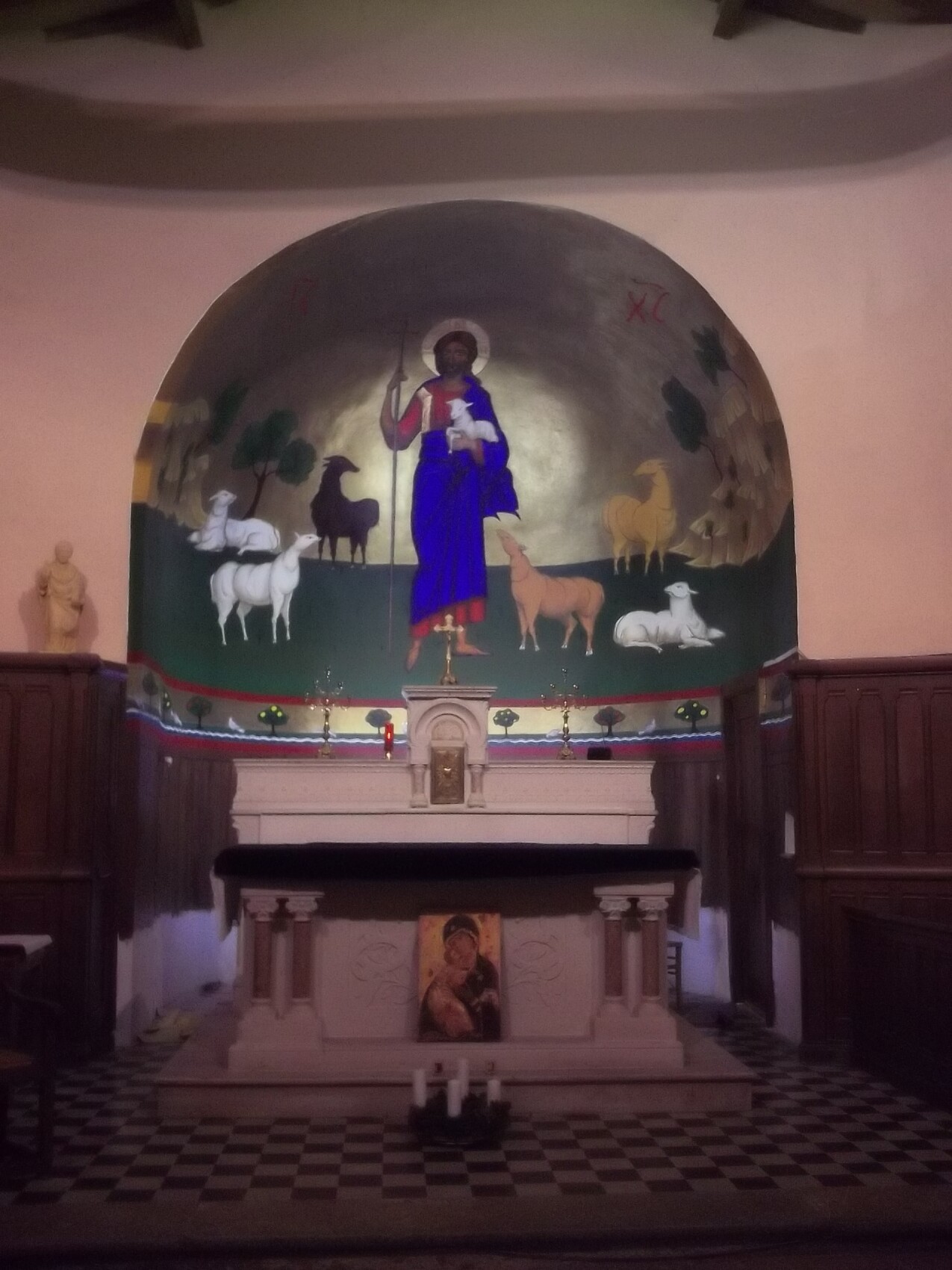 Peinture murale de 28 mètres carrés, cul de four de l'abside de l'église Saint-Roch de Les Chères, 69380